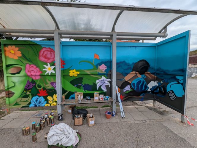European Solidarity Corps Volunteers Transform Sofia Bus Stop with a Meaningful Message